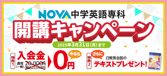 中学生対象の英会話ならNOVA中学英語専科。校舎数全国No.1なので通いやすく続けやすい英会話教室です。「中学英語専科」は様々なコースをご用意しており、特におすすめは、教科書に準拠したカリキュラムと実践的な英会話レッスンを組み合わせたハイブリッドレッスンです。文法や語彙力を分かりやすく解説し、さらに実践的な英会話レッスンで、「聞く」「話す」「読む」「書く」の英語4技能を養います。まずはお気軽に無料体験レッスン・資料請求を!