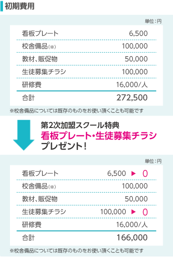 ご希望に合わせて下記2つのパターンから開校するスタイルをお選び頂けます。資金面・準備も全面的にバックアップする「開校支援サポート」をご用意!