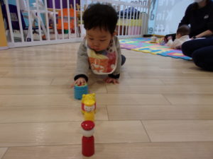 同じ月齢のお友達も拍手をして