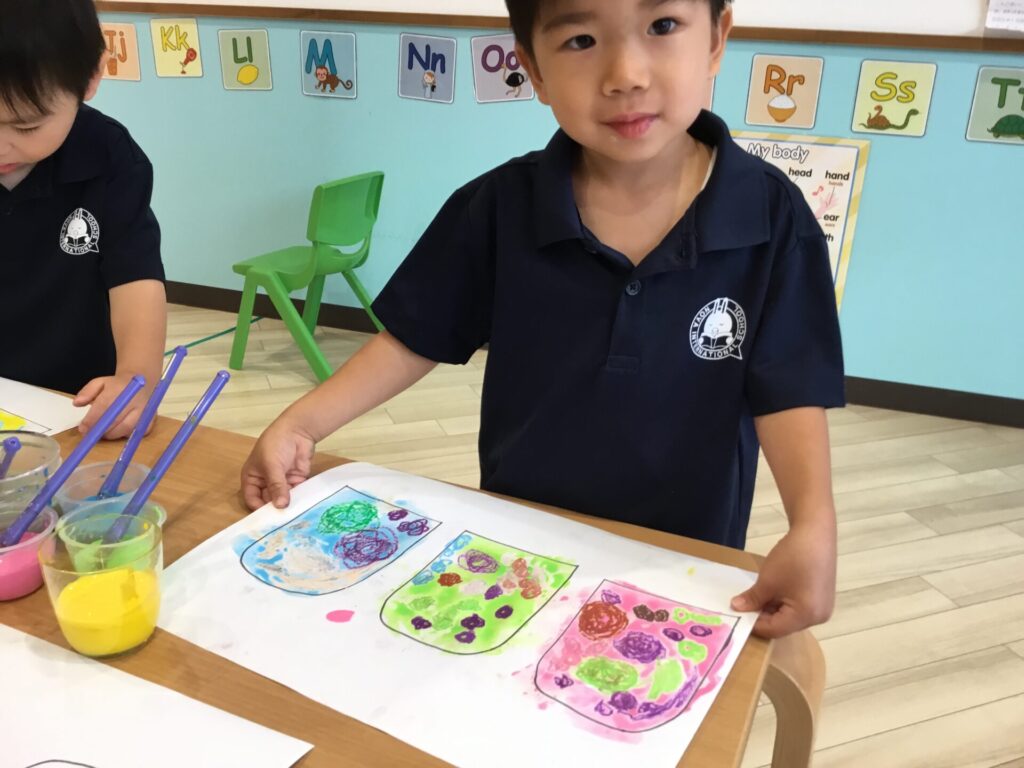「かわいい模様にしよう😊」「おいしそうかな❔」と自分で考えながら描いていました🌟