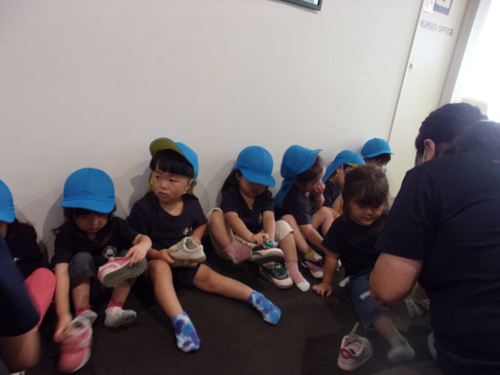 Nurseryクラスはカートに乗りエレベーターで3階に避難しました。