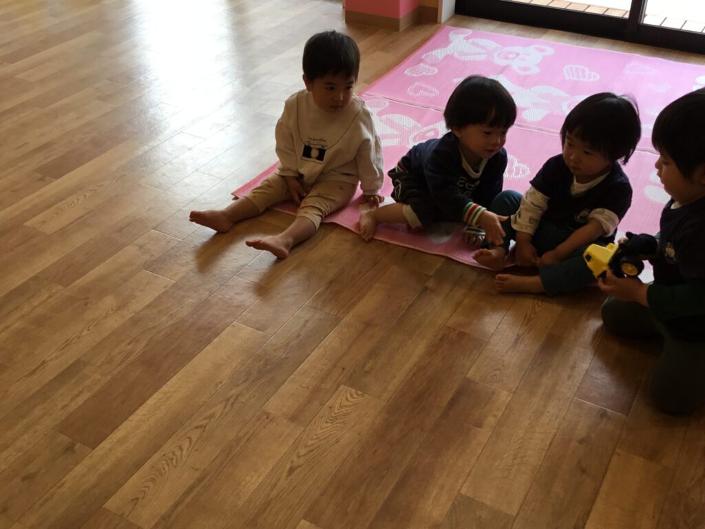 初めての場所、保育者に泣いてしまったり、戸惑い気味の3名でしたが、少しずつ慣れ、興味のある玩具に手を伸ばしたり遊んだりと、最近では笑顔も見られるようになってきました☺️