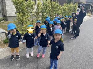 お友達と手を繋いで仲良く保育園周辺を歩きました♪
