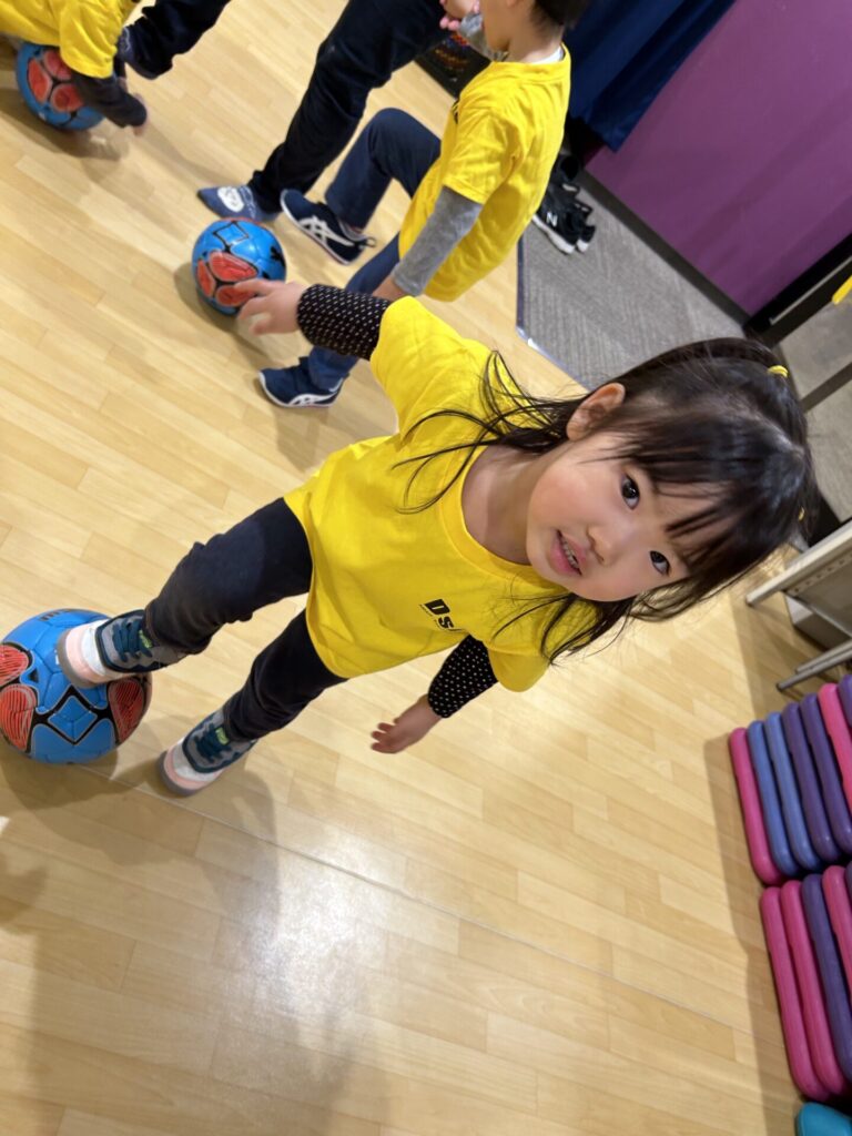 コーチのまねっこをして、足でピタッとボールを止めることも上手にできていました😁
