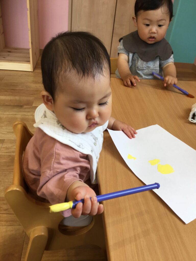 筆にたっぷり絵の具をつけて、チーズ色に塗り塗り🧀