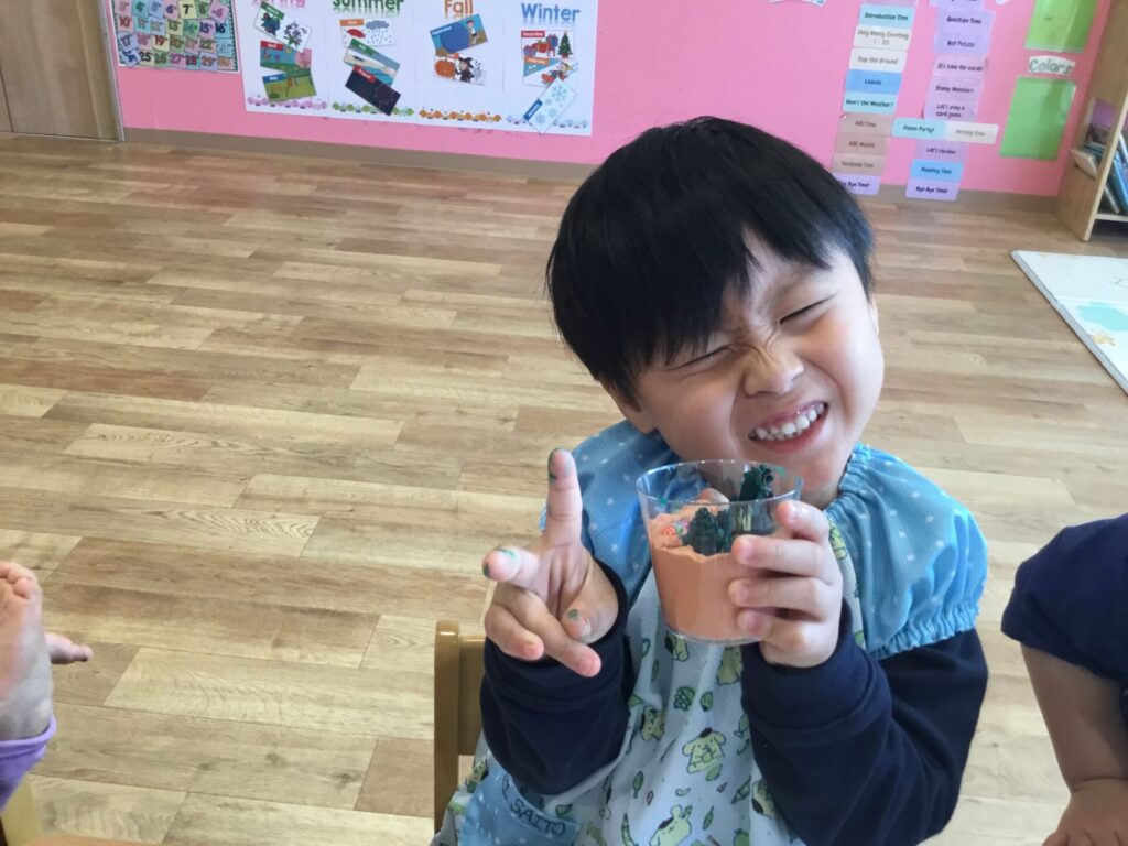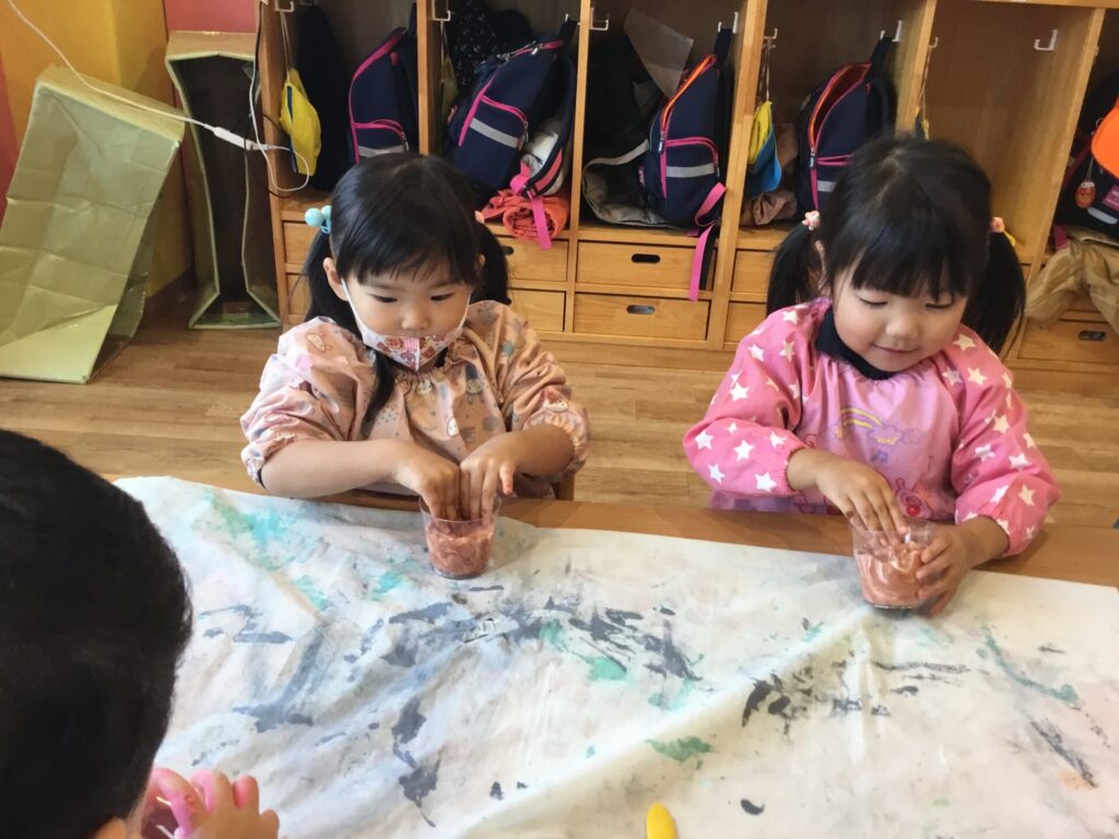 They then put their clay into containers so it keeps it shape. It was easy work for their little hands. 😊👏
