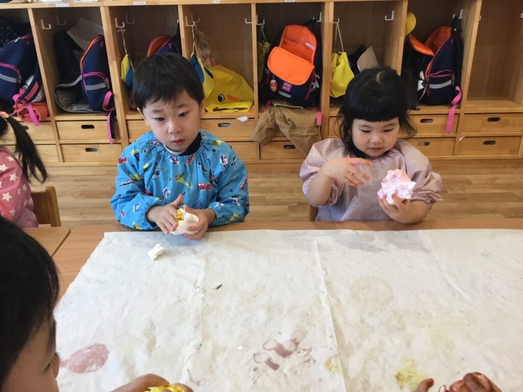 They started off with some white clay and kneaded it until it was warm enough to work with. Then came the fun part: the colors! They added some paint and dyed the clay lots of different colors. 😆