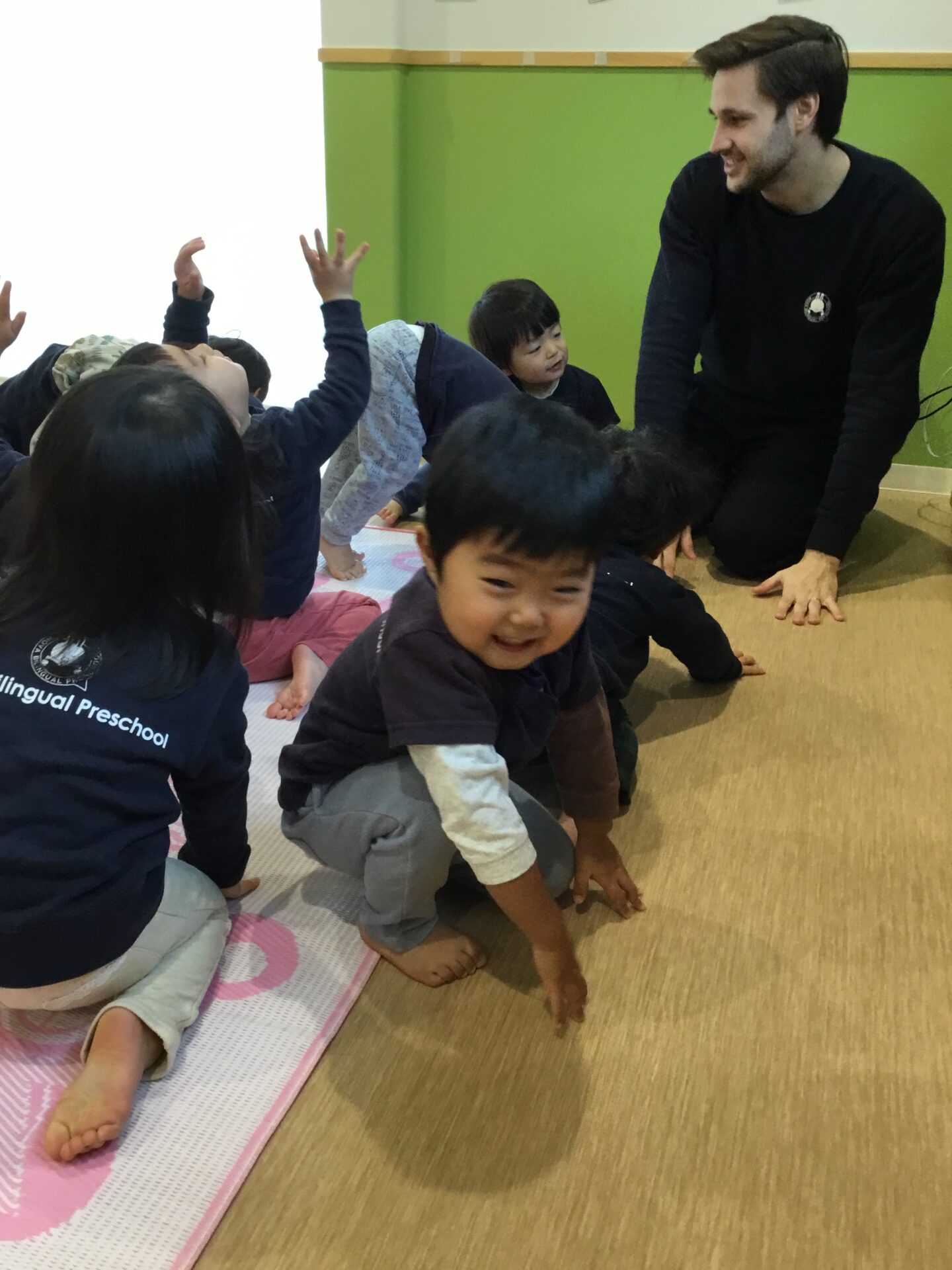 For our English lesson today we focused a lot on numbers! 1 2 3 4 5! First we practiced counting with our fingers, but that was too easy for the kids! So then we played a fun searching game. The kids had to look all over the room for the hidden numbers! Once we found them we practiced clapping or stomping along with counting.