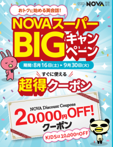 - 【英会話NOVA楽々園イオンタウン校】開校1周年キャンペーン11/30までです!
