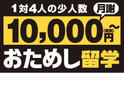 大人気の「1万円おためし留学」なら、無理なく、気軽に