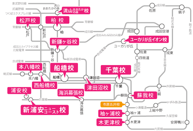 NOVA英会話TOP 英会話教室一覧 関東 千葉 千葉の 東京都はこちら 千葉県 千葉市 千葉校 海浜幕張校 蘇我校 稲毛ワンズモール校 船橋市 西船橋校 船橋校 津田沼校 松戸市 松戸アトレ校11月OPEN 佐倉市 ユーカリが丘イオン校 流山市 流山おおたかの森校 浦安市 新浦安ニューコースト校 浦安校 市川市 本八幡校 鎌ケ谷市 新鎌ヶ谷校 袖ヶ浦市 袖ヶ浦校 柏市 柏校 木更津市 木更津校 市原市 市原五井校 KIDSサテライト校