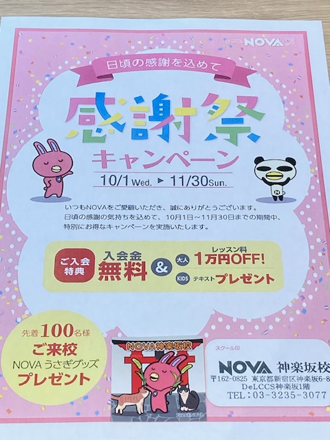 NOVA神楽坂校のスタッフによるブログです。スクールの日々の様子からイベントやキャンペーン情報、
