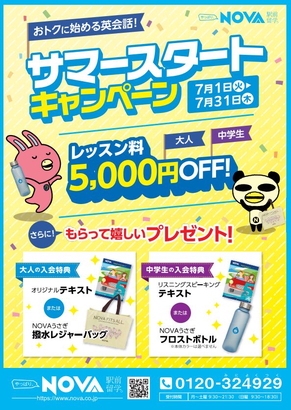 - 【NOVA駒込校】🌾選べるプレゼントキャンペーン📚
