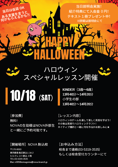 NOVA駒込校のスタッフによるブログです。スクールの日々の様子からイベントやキャンペーン情報、