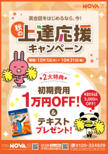 ネイティヴの外国人講師による少人数レッスンが、月4回1万円からの低価格で受けられる英会話教室です!レッスンは全て5段階のレベル別。グループ英会話レッスンでも、同じ進度の生徒様同士だから安心して受講頂けます。自分のペースでじっくり学びたい方には、講師を独占できるマンツーマンレッスンも月4回2万円からございます。日本人スタッフによる万全のサポートシステムで、質問もしやすく初心者の方も安心してご受講いただけます。NOVA監修のオリジナル教材は、ビジネス・旅行・留学向けや、英検®・TOEIC®対策など、目的・目標にあわせて学習が可能。PC・スマートフォン・タブレットなどでもご利用いただけるデジタル式のテキストもあります。オンライン英会話も高品質。簡単予約で時間や場所を選ばずレッスン開始!スキマ時間に英語力をアップしたい方に最適です。まずは無料体験を!お気軽にご相談ください。